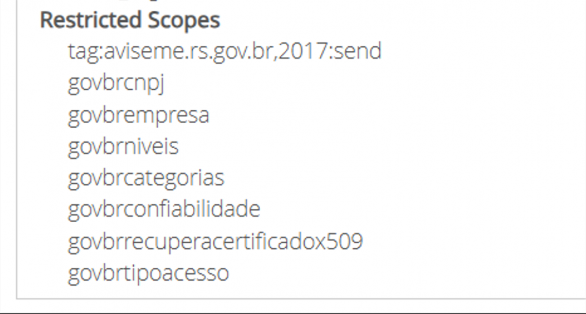 A lista dos “Restricted Scopes" é a lista dos escopos.